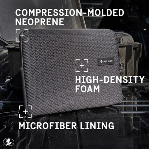 The Pelican Traveler Laptop Sleeve is the ideal travel solution for protecting your valuable technology. Equipped with a weather-resistant construction and rubberized zipper pulls to shield your laptop from the elements. Built to protect against bumps and scrapes, this laptop sleeve features a durable padded exterior with an anti-scratch inner lining. Secure your grip with a compression-molded exterior for slip and drop prevention. Designed for laptops of any brand with a screen size of up to 16 inches.